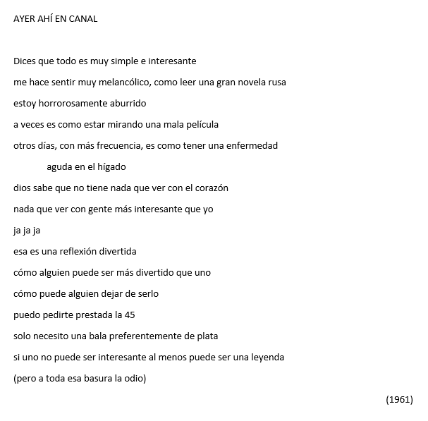 ¿Cómo sobrevivir al ruido mundanal de las ciudades? ¿Dónde está la belleza? La poesía de Frank O’Hara (1926-1966) recoge percepciones, recuerdos y frases que flotan en el aire urbano para así investigar la ley de su propia voz, una misión de la que da cuenta el presente título. Al caos imperante de Manhattan, epicentro de la maquinaria occidental, que atrofia el pensamiento y cubre las mentes y los corazones con hollín, O’Hara responde con un estilo que, con un aparente aire de despreocupación, insufla calidez y afecto. Dice Matías Serra Bradford, traductor de estos poemas, que uno debería entrar y salir rápido de un prólogo, así que aquí les presentamos, sin más interrupción, una selección de tres poemas del gran poeta estadounidense.